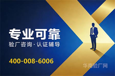 华南验厂网专业从事客户验厂、认证咨询、咨询辅导,价格公道,服务优良,秉承创新、高效、专业、务实企业精神。“咨询+辅导+考勤"”一站式服务保姆式辅导,全方位实时跟踪,多年来成功帮助上万家企业顺利通过验厂,在行业中有口皆碑! 十年磨一剑,咨询服务实力品牌。实力雄厚保证,选择华南验厂网、验厂无忧愁!