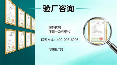 华南验厂网专业从事客户验厂、认证咨询、咨询辅导,价格公道,服务优良,秉承创新、高效、专业、务实企业精神。“咨询+辅导+考勤"”一站式服务保姆式辅导,全方位实时跟踪,多年来成功帮助上万家企业顺利通过验厂,在行业中有口皆碑! 十年磨一剑,咨询服务实力品牌。实力雄厚保证,选择华南验厂网、验厂无忧愁!