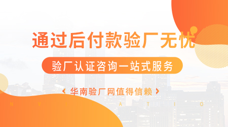 华南验厂网专业从事客户验厂、认证咨询、咨询辅导,价格公道,服务优良,秉承创新、高效、专业、务实企业精神。“咨询+辅导+考勤"”一站式服务保姆式辅导,全方位实时跟踪,多年来成功帮助上万家企业顺利通过验厂,在行业中有口皆碑! 十年磨一剑,咨询服务实力品牌。实力雄厚保证,选择华南验厂网、验厂无忧愁!